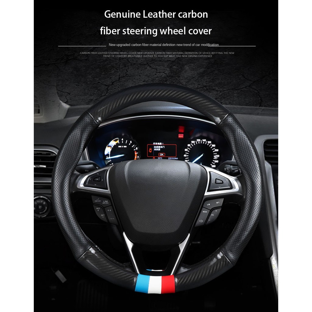 Otomotif > Aksesoris Interior Mobil > Setir & Sarung Setir Mobil > Penutup roda kemudi serat karbon mobil persediaan otomotif penutup roda kemudi universal kulit serat karbon yang dimodifikasi