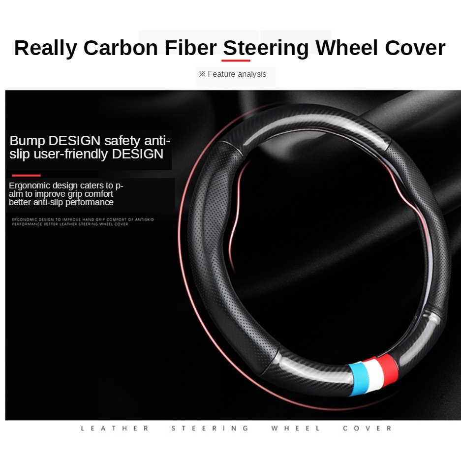 [Produk]: Penutup roda kemudi kulit serat karbon mobil