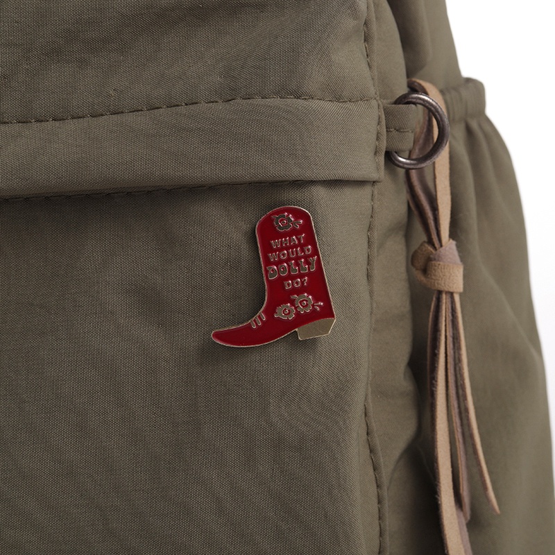 Aksesoris Fashion > Aksesoris Tambahan > Bros & Pin > Penyanyi Perempuan WWDD What Wou Dolly Do Enamel Pin Country Music Boots Bros Humor Lapel Badge Perhiasan Hadiah Untuk Teman