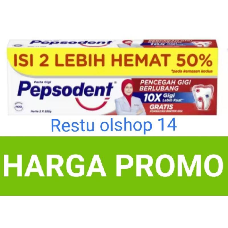 Pepsodent pasta gigi isi 2 lebih hemat yang dapat mencegah gigi berlubang dan membuat gigi lebih kuat.