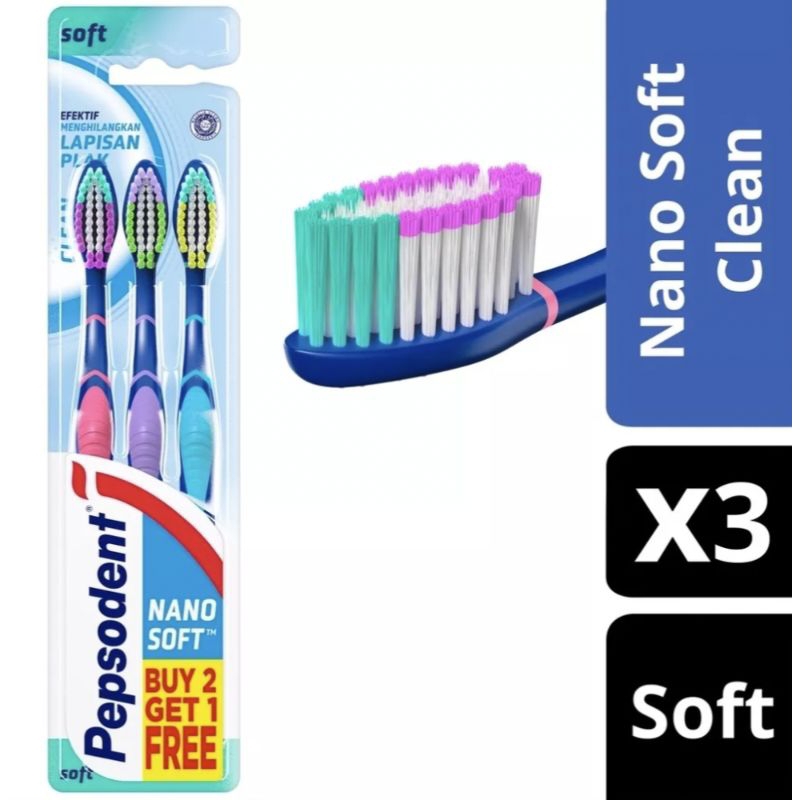 PEPSODENT SIKAT GIGI NANOSOFT CLEAN MULTIPACK ISI:2 & 3PCS