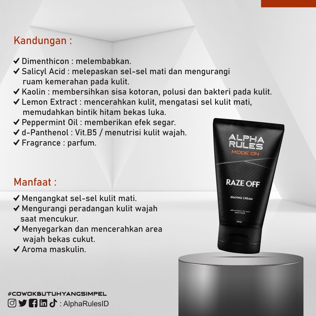 Detail [Per Buah] ALPHA RULES Raze Off Shaving Cream 100ml Original BPOM