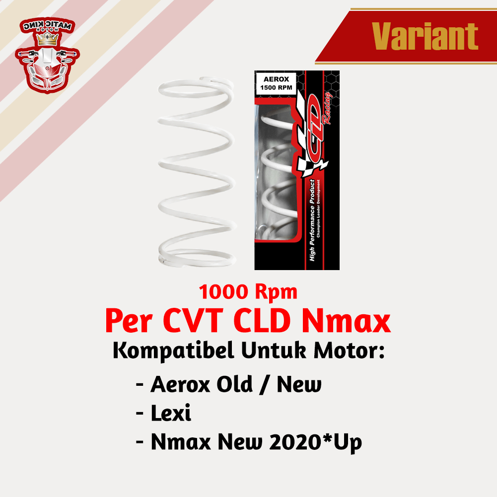 Per CVT Yamaha Nmax Aerox Old New 155 2DP CLD Racing 1000 RPM Fungsi per CVT adalah untuk mendorong pully saat terjadi gaya sentrifugal. Dengan mengganti per CVT standar dengan per CVT yang punya spek rpm 1000 dan 1500. Bisa bikin akselerasi skutik jadi enak dan nggak lemot.
