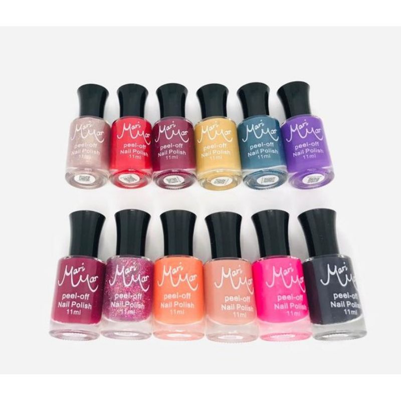 Dengan warna - warna berkilau dan kemasan unik hari special, Marimar Nail Polish Collection 12 Colours Shades Peel Off akan membuat anda terlihat lebih anggun dan cantik, dan bisa dikelupas.