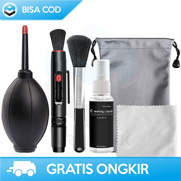 Fitur Set Pembersih Kamera Set pembersih untuk merawat kamera DSLR guna menjaga kualitas agar tahan lama. Set pembersih ini dapat Anda gunakan untuk membersihkan bagian-bagian lensa atau bodi kamera dengan lebih mendalam.