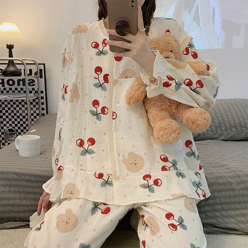 Perancis renda baju setelan renda lembut Prancis di dalam angin bunga piyama wanita manis musim semi dan musim gu