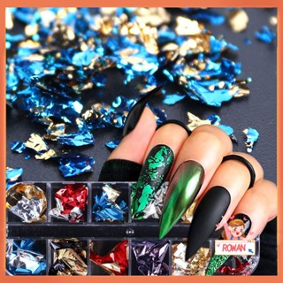 R-FLOWER 12kisi Kuku Payet Manicure Decor Cermin Chrome Pigmen Emas Perak Foil Kertas Serpihan Tidak Teratur