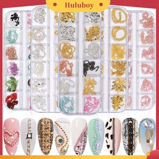 Huluboy Huluboy♡ 12pcs / Set Ornamen Rantai Berlian Imitasi 3D Bahan Metal Untuk Dekorasi Kuku Wanita