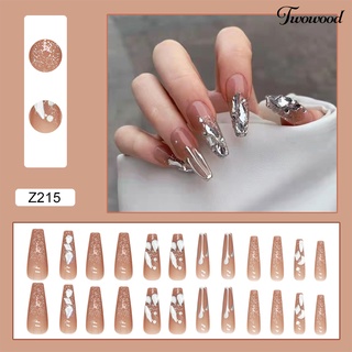 Twowood 1 Set Kuku Palsu Full Cover Detachable Dengan Lem Untuk Nail Art Wanita