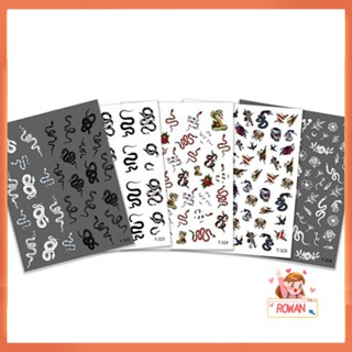 R-flower 1/6PCS Stiker Kuku Menyala Dalam Gelap 3D Nail Polish Sticker Rose Butterfly Nail Art Glitter Decal