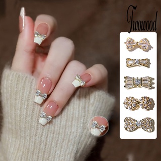 5 Pcs Ornamen Kuku 3D Bentuk Pita Bahan Zirkon Anti Karat Untuk Dekorasi Nail Art