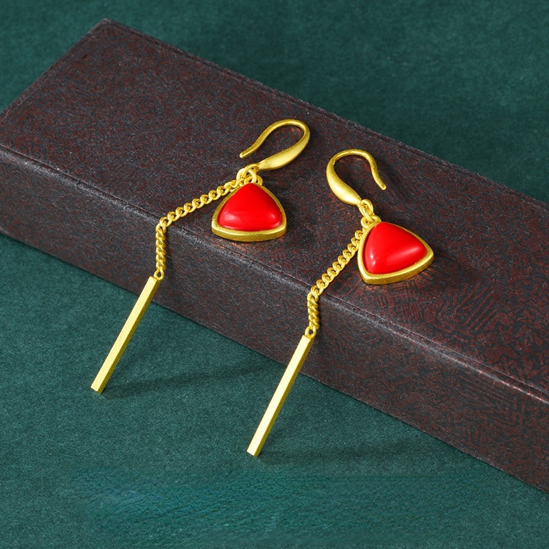 Detail Perhiasan Anting Rumbai Panjang Lapis Emas Emas Asli Kadar 375Batu Akik Merah Gaya Vintage Korea
