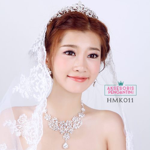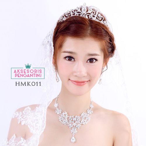 Aksesoris Fashion > Aksesoris Rambut > Hiasan Kepala, Tiara & Mahkota Bunga > Perhiasan Mahkota Kalung Crystal Pengantin l Paket Aksesoris Wedding Modern- HMK011