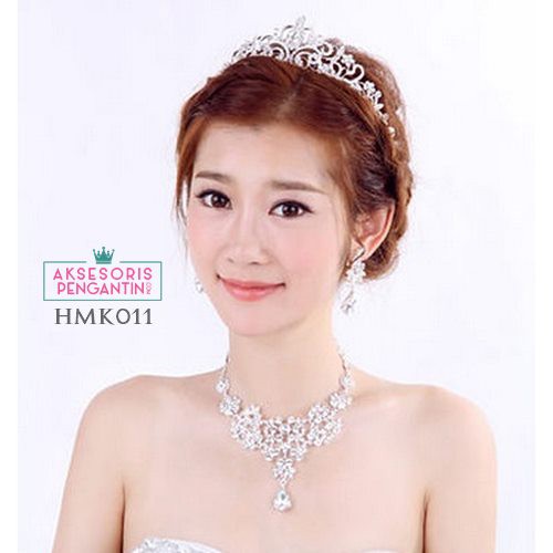 Perhiasan Mahkota Kalung Crystal Pengantin l Paket Aksesoris Wedding Modern- HMK011