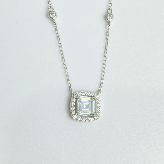 Detail perhiasan wanita kalung liontin kotak mata kristal berlian zirconia perak asli s925 global jewellery CN066