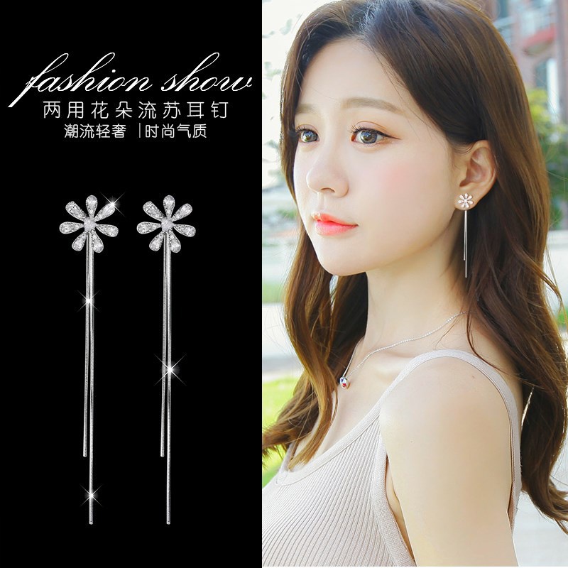 Detail Peri wajah pelangsing anting-anting wanita temperamen Korea panjang rumbai anting-anting benang muti