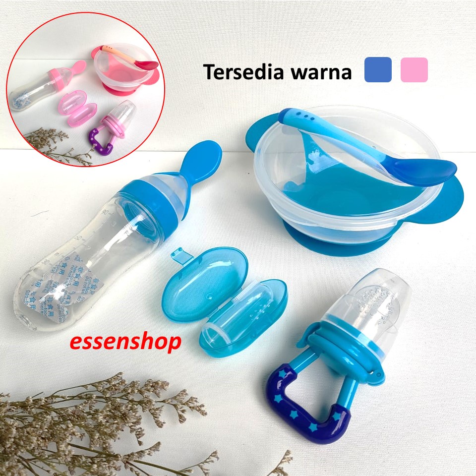 Moment makan si kecil begitu penting untuk tahapan pertumbuhannya. Perlengkapan Makannya pun tentu harus istimewa dengan memberikannya kenyamanan dan kemudahan bagi bunda. Berbagai produk baby feeding ini menjadi pilihan tepat agar proses MPASI pun begitu menyenangkan. Tentunya dengan bahan material yang aman, BPA Free dan food grade Spesifikasi dan kegunaan produk : - Sendok Botol : Berguna memberikan makanan/minuman agar lebih praktis. Bisa untuk susu, jus, atau makanan yang teksturnya cenderung lebih cair, tidak terlalu kental/padat. ujung sendok bahan plastik keras ya bukan silicone, yg silicone bagian bodynya. - Baby Fedeer : Berguna untuk melatih si kecil makan buah secara langsung tanpa takut tersedak. Bunda bisa potong2 kecil buah lalu masukan ke empeng siliconenya. Baby tinggal gigit2, dan sari buah bisa langsung dia nikmati. - Mangkok+Sendok+tutup : Benda wajib untuk MPASI. Sendok silicone dengan sensor panas. Jadi jika sendok terkena makanan yng panas akan berubah warna menjadi putih dan kembali ke warna semula setelah suhu normal. Bagian bawah mangkok dilengkapi suction silicone sehingga bs menempel di tray atau meja bayi. - Sikat lidah/gigi dengan box: berguna untuk membersihkan lidah bayi yg kadang suka mengendap bekas susu atau makanan. Standar Packing kami sudah menggunakan bubble/dus agar aman.