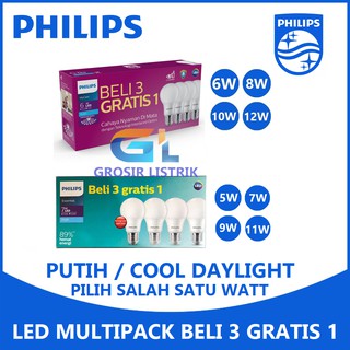 Lampu Philips LED Essential Multipack 5W 7W 9W 11W Putih Paket Beli 3 Gratis 1 Grosir 5 7 9 11 W