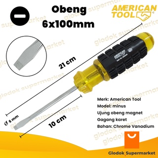 Obeng Minus 4 inch American Tool Diameter 6mm Panjang Besi 10cm Gagang Karet Magnet