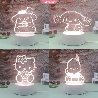 Lampu Meja LED 3D Bentuk Hello Kitty Kuromi My Melody 3 Warna Untuk Dekorasi