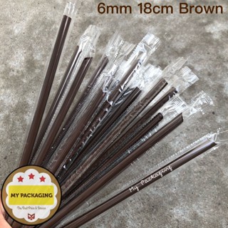 isi 250pcs Sedotan Plastik 6mm 18cm COKELAT / HIJAU Steril Bungkus Plastik Lurus Runcing 6mm - Sterile Straw