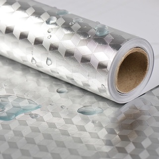 AWOO Wallpaper Aluminium Foil Anti Minyak Waterproof Sticker 100x60cm dan 300x60cmModel Cubic - YK-292 - Silver