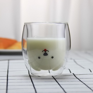 Cangkir Kopi Anti Panas Double-Wall Glass Cute Animal 250ml - Transparent