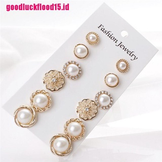 (LUCKID) 6 Pasang / Set Anting Tusuk Aksen Mutiara + Berlian Imitasi Untuk Perhiasan Wanita