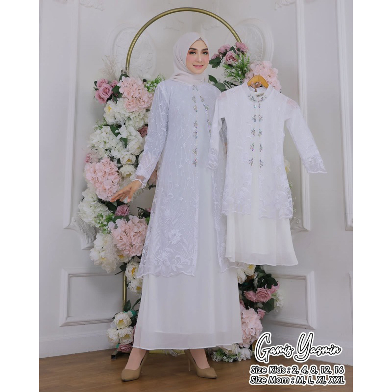 Permata Olshop / Couple Gamis Yasmin / Kebaya Couple Ibu dan Anak Perempuan / Kebaya Gamis Modern / Gamis Pesta Mewah / Gamis Kebaya Couple / Kebaya Gamis Anak