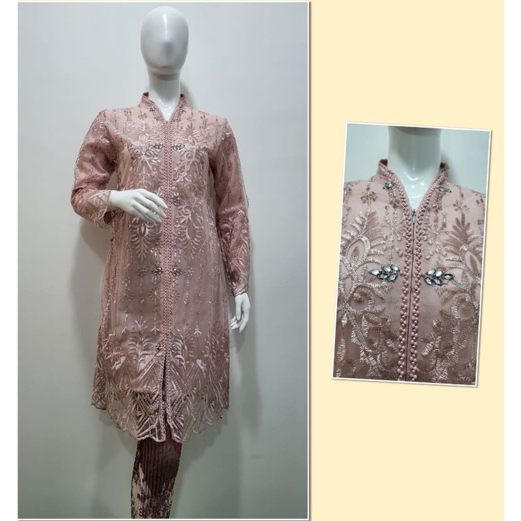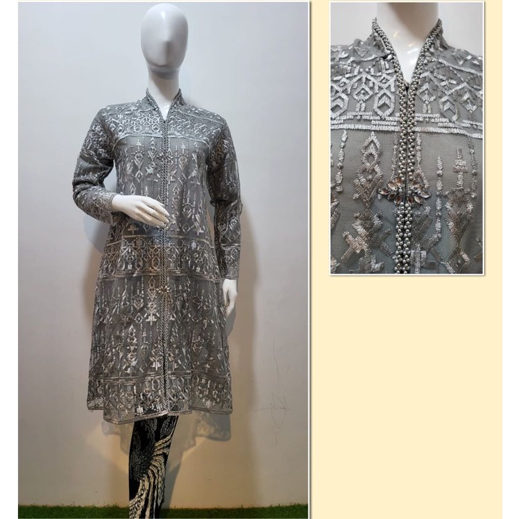 Matt bahan tulle bordir mix payet Full puring bahan hyget Resleting depan ( busui friendly ) Tangan lurus panjang