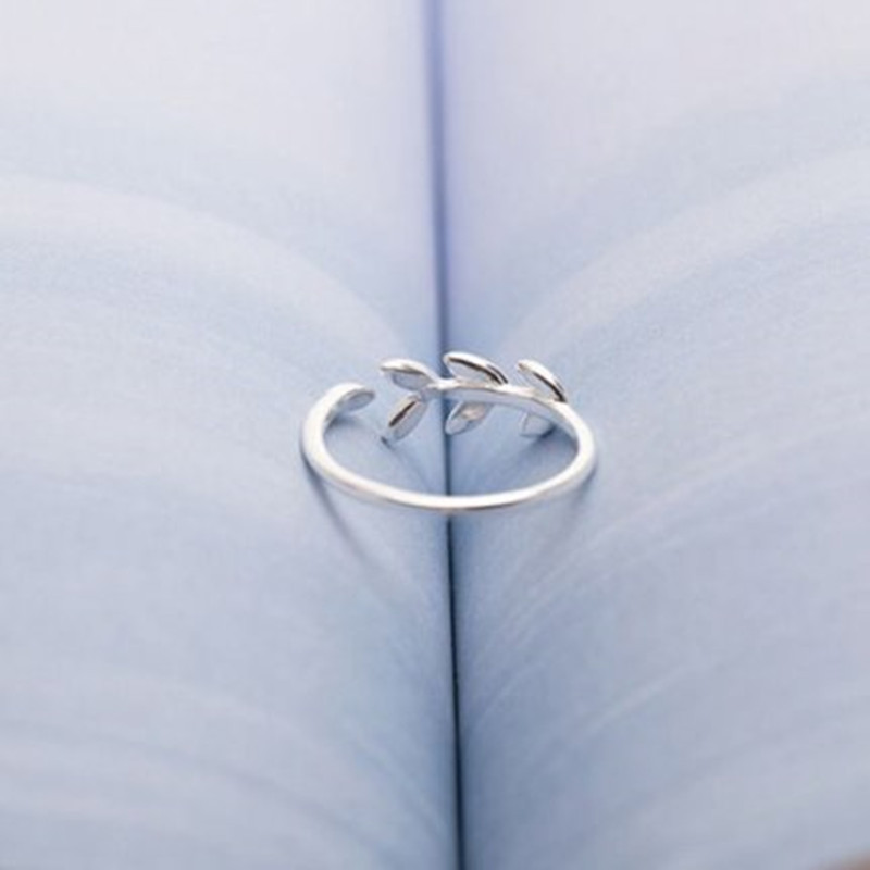 Detail Personaly Simple Green Leaf Rings Korean Index Finger Opening Ring Women Jewelry