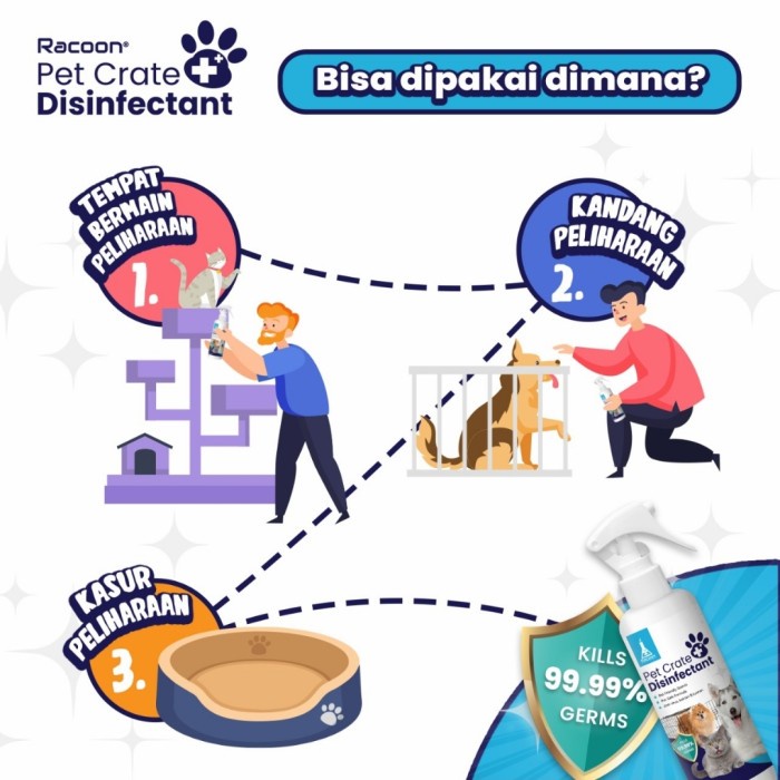 RACOON Pet Crate Disinfectant adalah Pet Safe Spray yang dapat mensterilkan kandang, kasur serta tempat bermain hewan kesayangan anda dari kuman, virus dan bakteri.