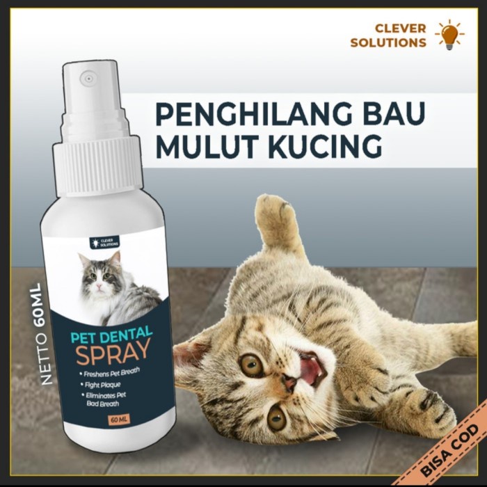 PET DENTAL SPRAY CLEVER SOLUTIONS adalah penghilang bau mulut yang diformulasikan khusus untuk kucing. Spray ini 100% bebas alkohol yang memiliki fungsi menghilangkan bau mulut, menyegarkan nafas, membasmi plak gigi & tartar gigi, serta membunuh bakteri & kuman.