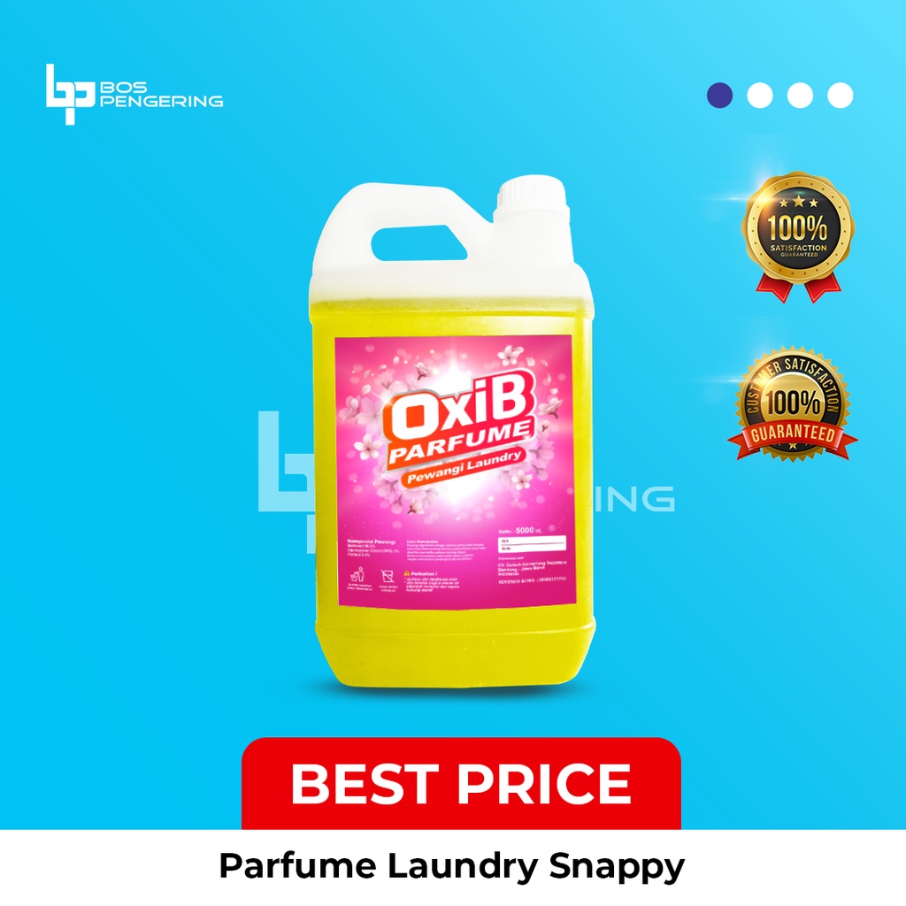 Pewangi Pakaian Laundry - OxiB Parfum Aroma Snappy 5 Liter Wangi Baby Tahan Lama Berkualitas Pewangi yang membuat pakaian anda harum menyegarkan sepanjang hari, dan tidak akan meninggalkan bekas bercak dipakaian anda karena pewangi ini tidak mengandung air. Pewangi dapat digunakan untuk bahan kain katun, wool, polyester, silk, linen, denim, lace, taffeta, damask dan lainnya