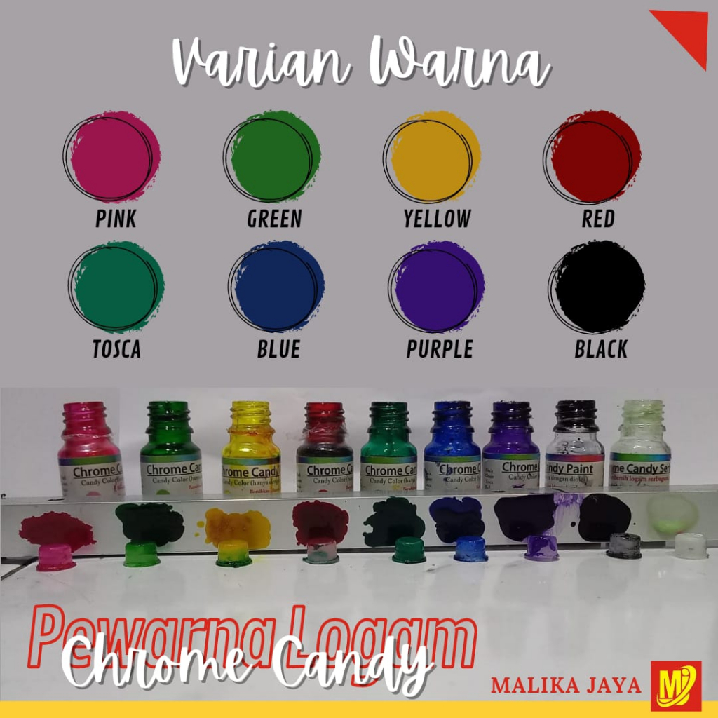 Cat dengan variasi warna alternatif masa kini. Bisa untuk cat velg jari2, knalpot, stang, shockbreaker, dll untuk semua jenis media yang berbahan logam, stainles, alumunium,fiber/plastik,mika dan media yang berbahan dasar padat lain. Tidak perlu pengeluaran yang banyak untuk mendapatkan penampilan kendaraan yang menarik. Keunggulan dari cat ini antara lain : - Membuat penampilan kendaraan anda semakin menarik - Mencegah/Membersihkan karat (khusus pengkilat logam) - Bisa untuk mengecat velg, jari2, knalpot, shockbreaker, stang dll - sangat susah luntur Tentunya bisa mengirit biaya pengeluaran anda - penggunaan yang mudah dan sederhana (hanya oleskan dengan kapas, jadi)