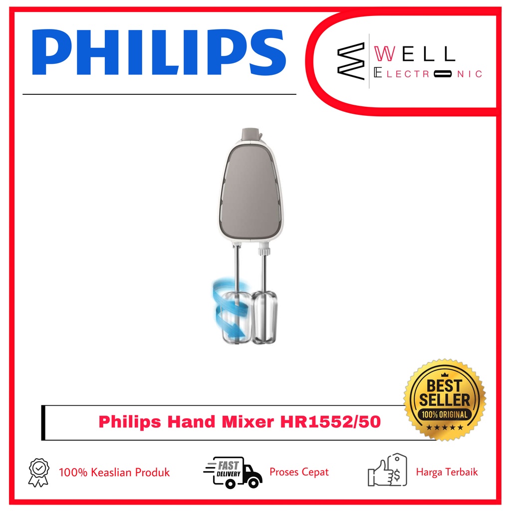 Detail PHILIPS HAND MIXER HR1552/50 ABU-ABU HR 1552 GARANSI RESMI 2 TAHUN