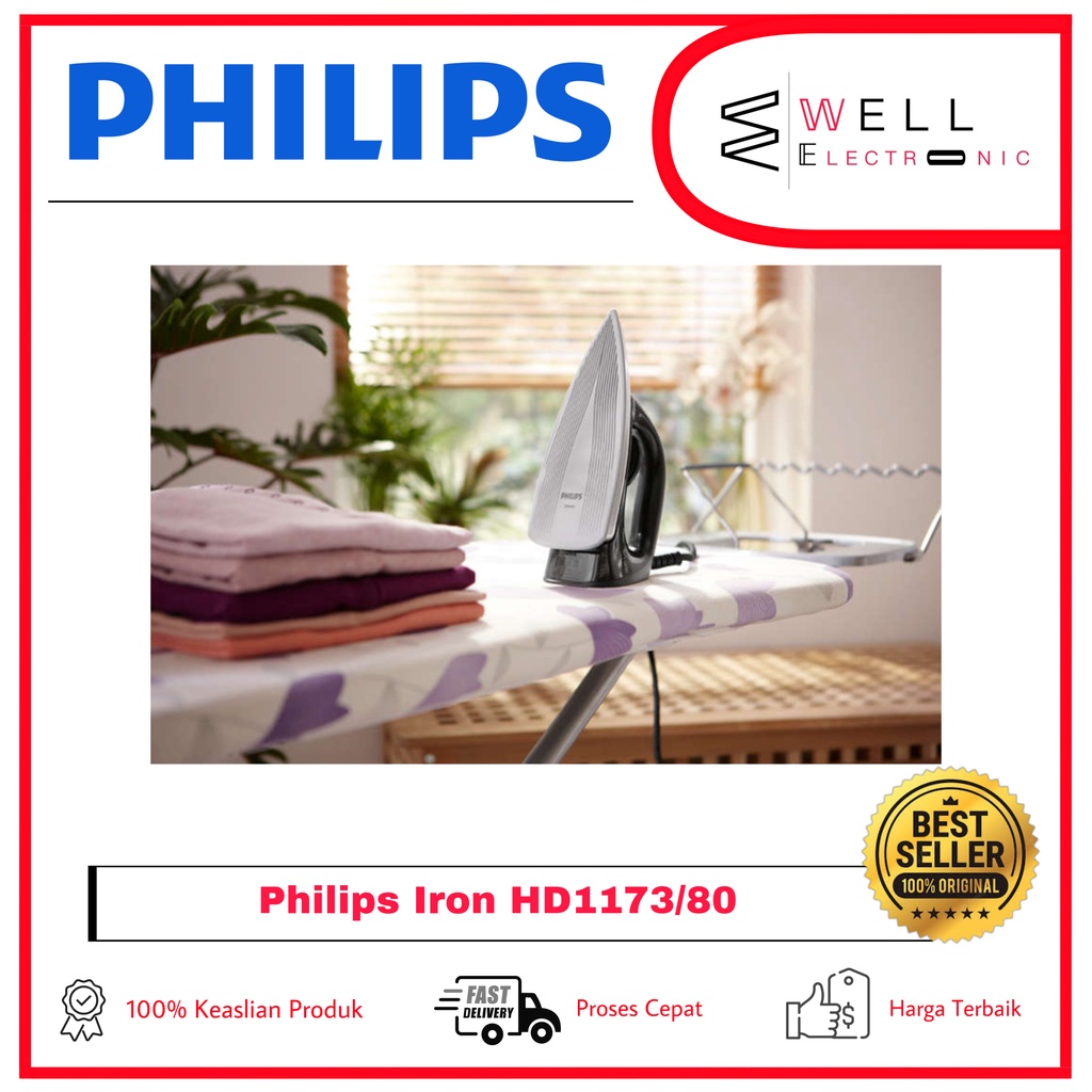Detail PHILIPS HD1173/80 SETRIKA HD 1173 DRY IRON TAPAK KERAMIK - HITAM