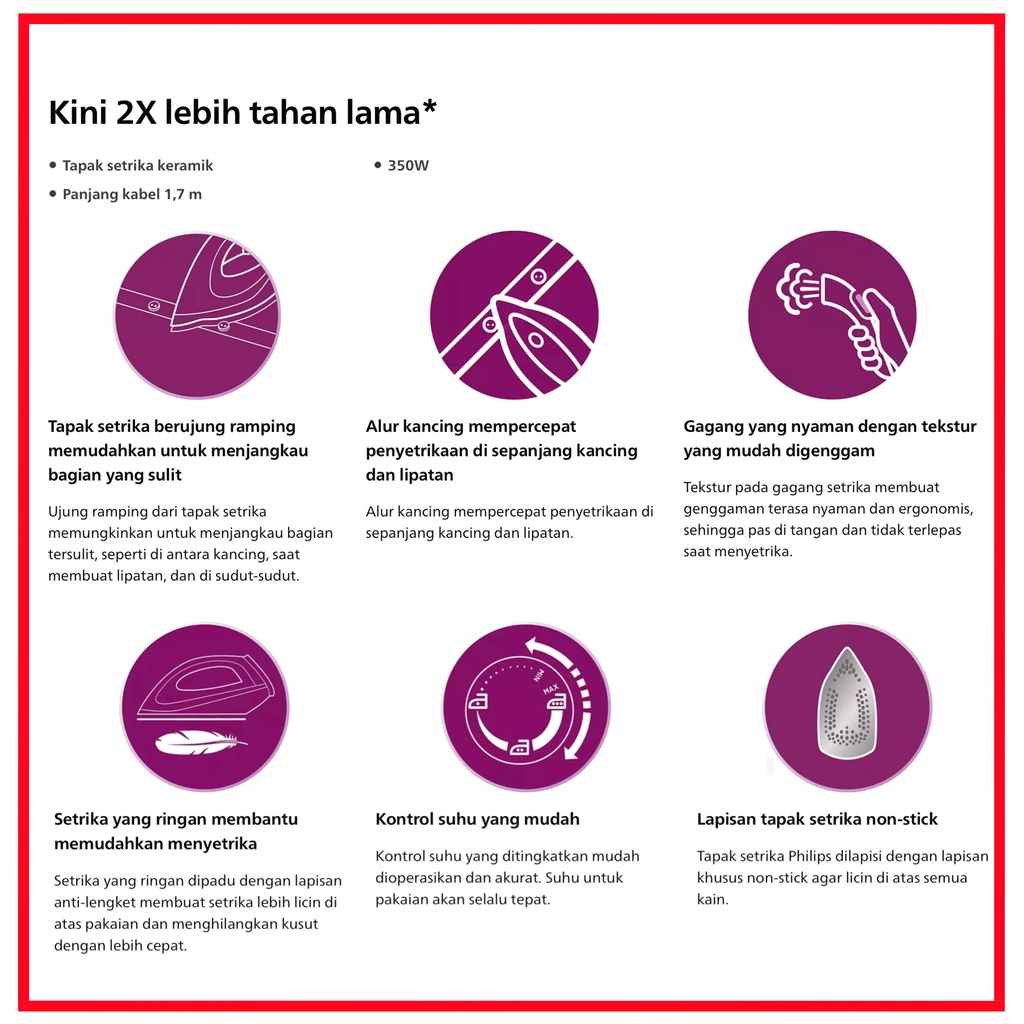 Tipe : Philips Setrika Kering HD1173 Warna : PINK (/40) & OREN (/50) & HIJAU (/70) & HITAM (/80)