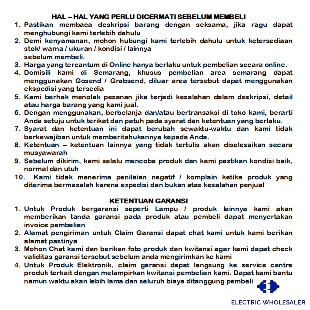 Mohon membaca SYARAT DAN KETENTUAN yang tertera pada gambar produk. Jika sudah membeli sama dengan sudah menerima SYARAT DAN KETENTUAN yang berlaku.
