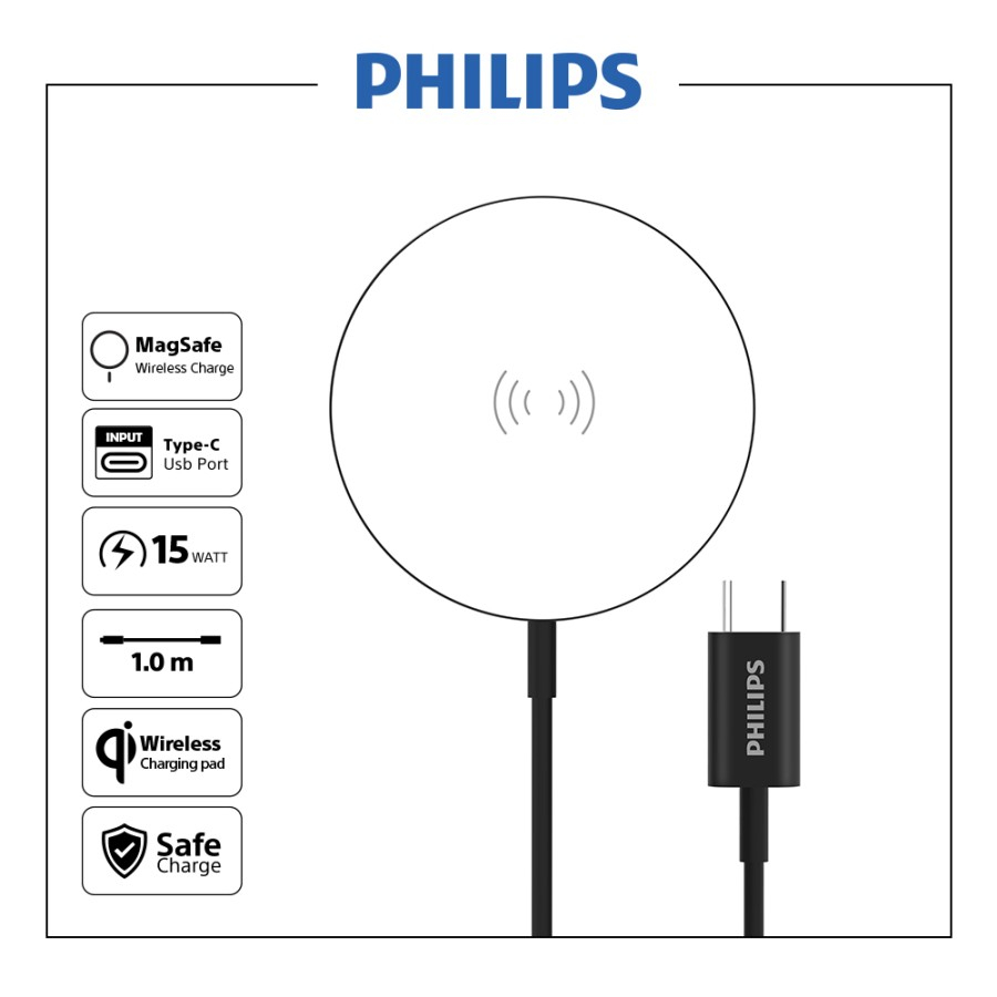 Detail Philips Wireless MagSafe Charger Pad 15W DLP9319MW for iPhone iPad