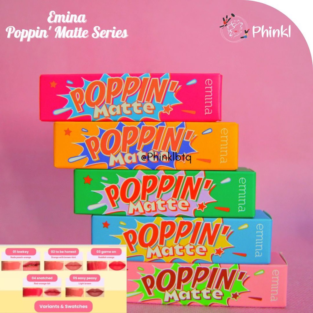 🎀 WAJIB tambahkan Extra Bubble Wrap dan Extra Kardus di etalase phinkl kosmetik ke cart/keranjang belanja Sista untuk mengurangi kerusakan yang timbul akibat pengiriman kurir. Dengan IDR 2000 paket Sista akan sampai dengan Bubble Wrap dan Kardus 😍 Ekspresikan dirimu dengan Emina Poppin Matte Dengan formula yang ringan, non-sticky dan transferproof membuat Emina Poppin Matte tahan hingga 12 jam.