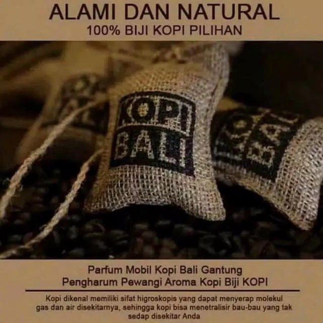 Nama produk = kopi bali INFO PRODUK 1. Bahan Dibuat dari 100% kopi pilihan yang alami dan natural. Tidak membuat mual seperti parfum essence dan kimia. Bagi anda yang pernah mual karena parfum kopi. Anda harus mencoba bau kopi asli ini.