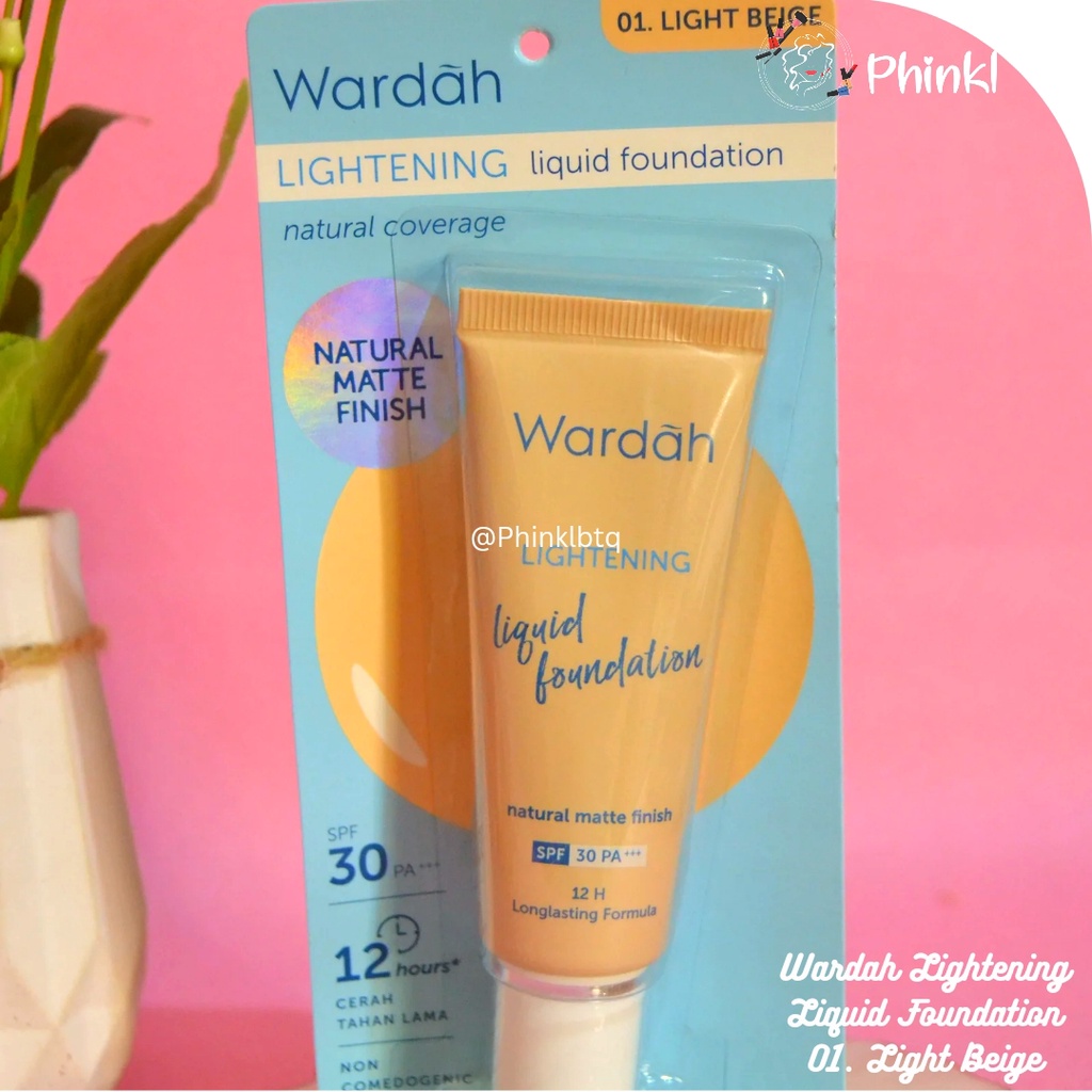 🎀 WAJIB tambahkan Extra Bubble Wrap dan Extra Kardus di etalase phinkl kosmetik ke cart/keranjang belanja Sista untuk mengurangi kerusakan yang timbul akibat pengiriman kurir. Dengan IDR 2000 paket Sista akan sampai dengan Bubble Wrap dan Kardus 😍 Wardah Lightening Liquid Foundation adalah liquid foundation yang terasa ringan dan nyaman digunakan sehari-hari. Memilki coverage medium, mencerahkan, dan tahan lama hingga 12 jam. 1. Mengandung Oil Absorber untuk bantu menyerap minyak secara optimal untuk tampilan natural matte finish. 2. SPF 30 PA +++ 3. Mengandung Vitamin E untuk melembabkan kulit 4. Non comedogenic 5. Dermatologically tested 6. For all skin type Wardah Lightening Foundation adalah produk alas bedak yang dirancang khusus untuk memberikan tampilan kulit yang cerah dan merata. Berikut adalah deskripsi tentang Wardah Lightening Foundation: