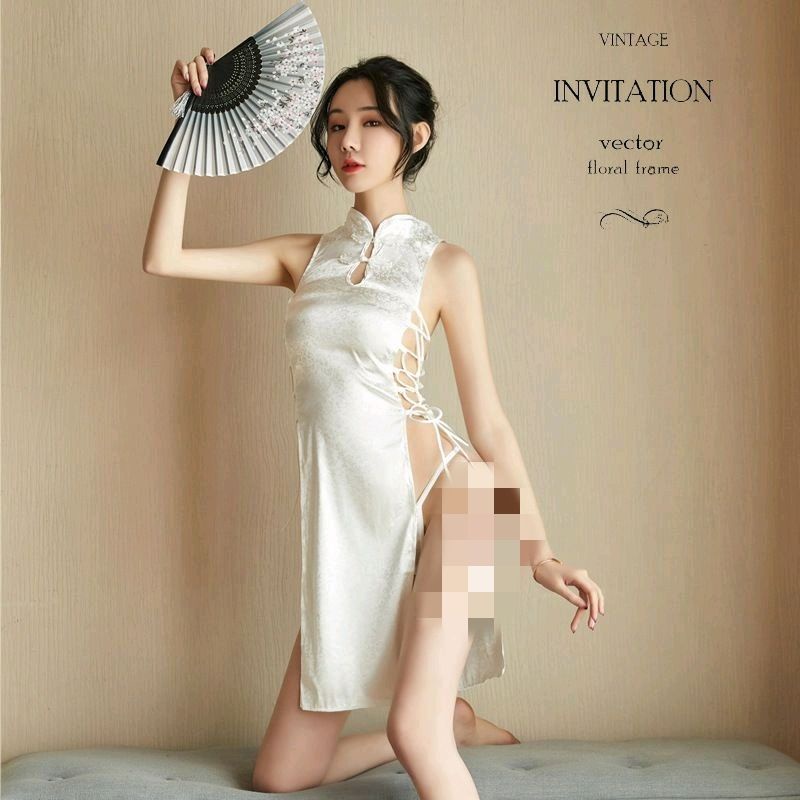 Detail 《Phiphii》Cosplay lingerie Cheongsam Qipao China Dress Tali samping Hitam Putih