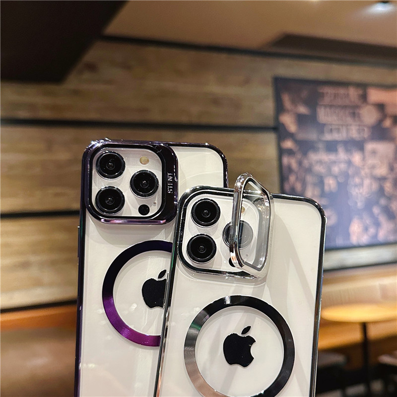 Detail Phone Case For Iphone 13 Pro Max 13 Pro 13 Magsafe Charging Electroplating Camera Frame Hidden Folding Bracket