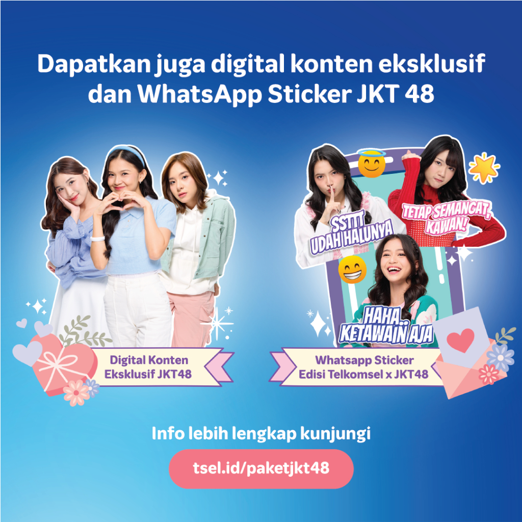 Manfaat yang akan didapatkan dari Voucher Kuwota JKT48 adalah: - Kuota Data 5GB All Net - Periode Kuota Berlaku selama 30 hari. - Konten Ekslusif JKT48 (Digital Konten) - Whatsapp Sticker Edisi Telkomsel x JKT48 Cara mengaktifkan Voucher Kuwota JKT48: a. Gosok kode hologram yang ada pada Voucher Kuwota JKT48 b. Tekan *133*kode voucher# lalu tekan Yes/OK c. Cek Kuota di *363# atau download aplikasi mytelkomsel app Hal yang perlu diperhatikan: 1. Pembeli tidak bisa memilih Photocard Member. 2. Pelanggan perlu mengaktifkan Paket broadband yang ada pada Voucher Kuwota JKT48 untuk mendapatkan Konten Ekslusif dan Whatsapp Sticker JKT48
