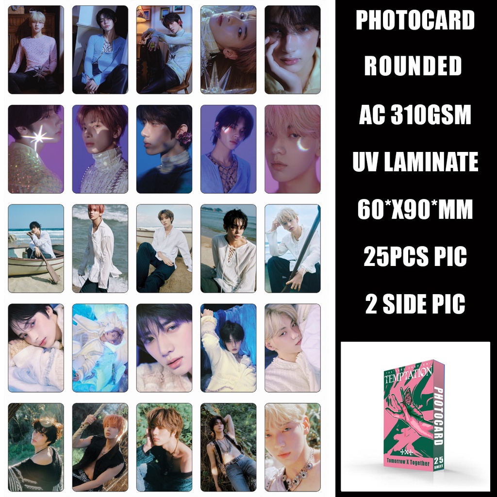 A. SPESIFIKASI PHOTOCARD : * BAHAN ART CARTON 310 GSM * LAMINASI GLOSSY 5 MICRON * PRINT 2 SISI * DIPOTONG PRESISI DENGAN MESIN * UJUNGNYA TUMPUL * 1 PACK ISI 25 SHEET * DIKRIIM DENGAN KARDUS AGAR PRODUK TIDAK PENYOK * YANG 2 SISI HANYA MODELL CHAPTER FREEZE DAN TEMPTATION
