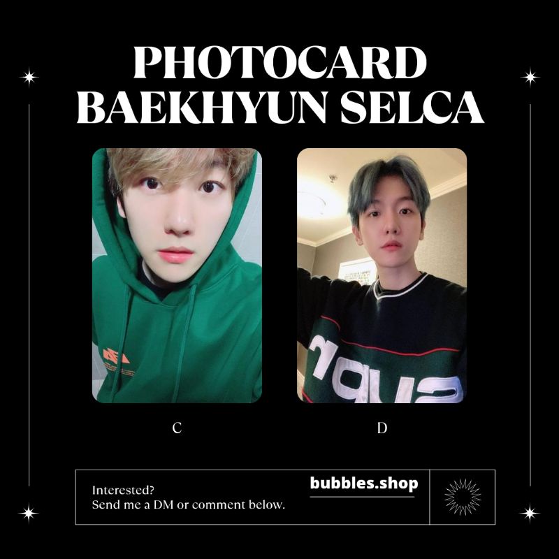 ✨ Photocard unofficial Baekhyun exo ✨ ukuran 8cm×5cm ✨ harga merupakan untuk 1pcs photocard ✨ laminasi glosy bolak balik ✨ unofficial (bukan asli) ✨ 1 sisi (sisi belakang polos putih) ✨ art carton/ketebalan 360g (super tebal) ✨ sisi ujung lengkung ✨ variasi gambar dari huruf A-J ✨ foto sesuai di produk dan yang kamu pilih ✨ bisa cod ke seluruh Indonesia ✨ safety packing ✨ free packing ( bubble warp + kardus + polymair ) ✨ wajib membeli lebih dari 1 photocard (boleh mix dengan produk atau grub lain) ✨ pengiriman dari Jakarta, bisa cek ongkir dulu sebelum order. ✨ pre order 1-15 hari menghindari pembatalan otomatis ✨ waktu packing dan proses produksi 1-15 hari
