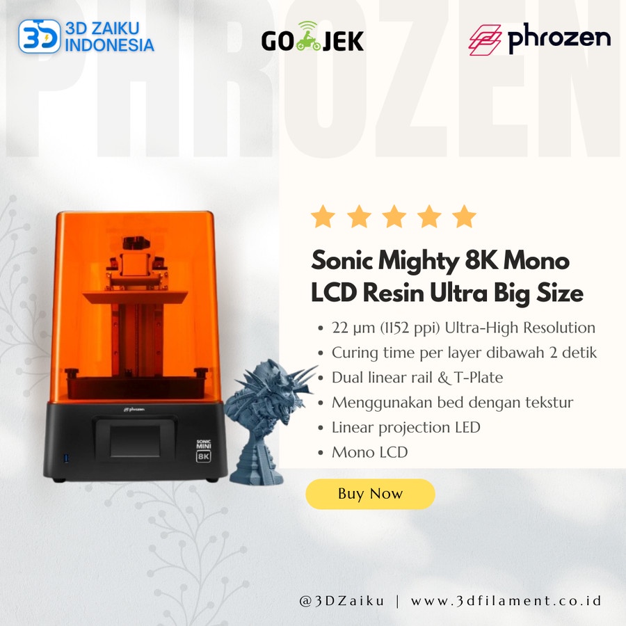 3D Zaiku merupakan Distributor Resmi dari Phrozen Phrozen Sonic Mighty 8K Mono LCD Fast Resin 3D Printer Ultra Big Size