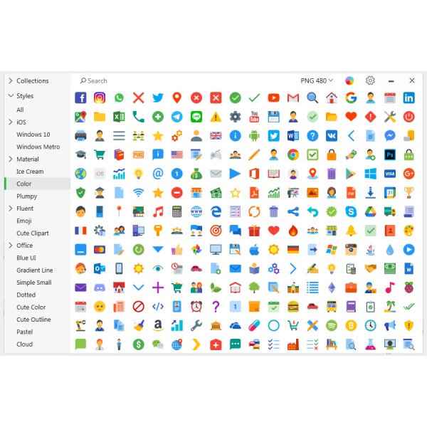 kumpulan ikon desainer dan cangkang perangkat lunak yang nyaman untuk bekerja dengannya. Program ini memiliki lebih dari 170 ribu ikon berbeda. Program ini memiliki pencarian berdasarkan konteks. Anda dapat mengatur filter berdasarkan gaya. Ekspor dimungkinkan dalam PNG, SVG, PDF, ESP, XAML, ICO. Anda juga dapat mengatur ukuran dan warna ikon sebelum mengekspor.